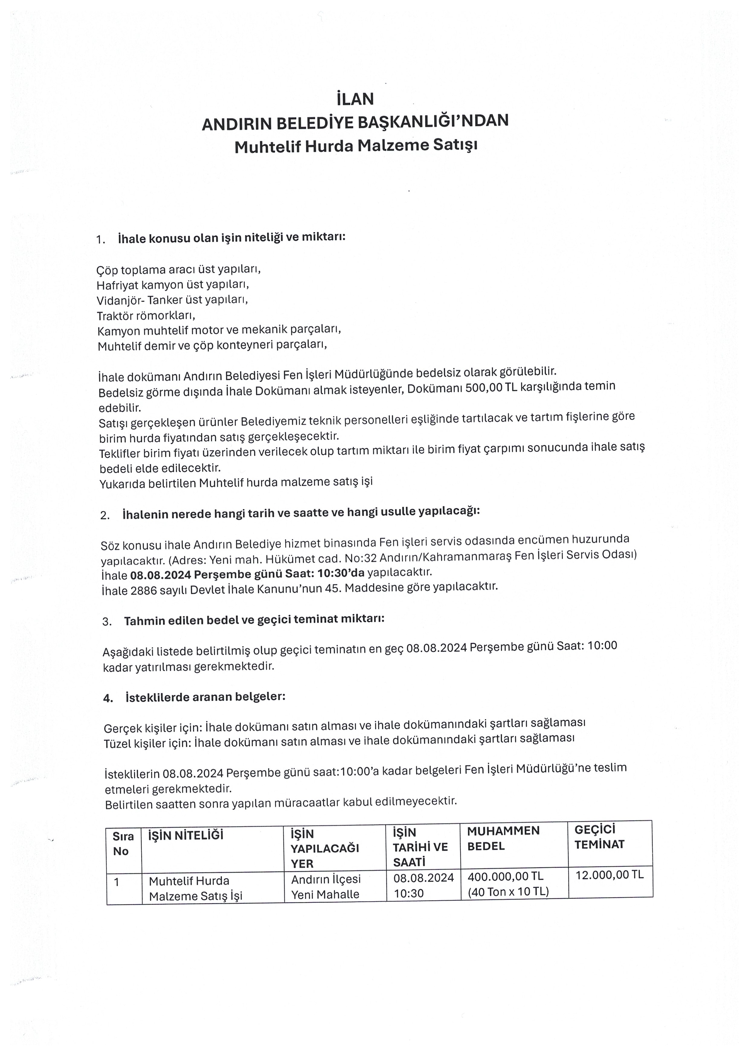 Ekonomik Ömrünü Doldurmuş Asfalt Plenti Malzemeleri Satışı